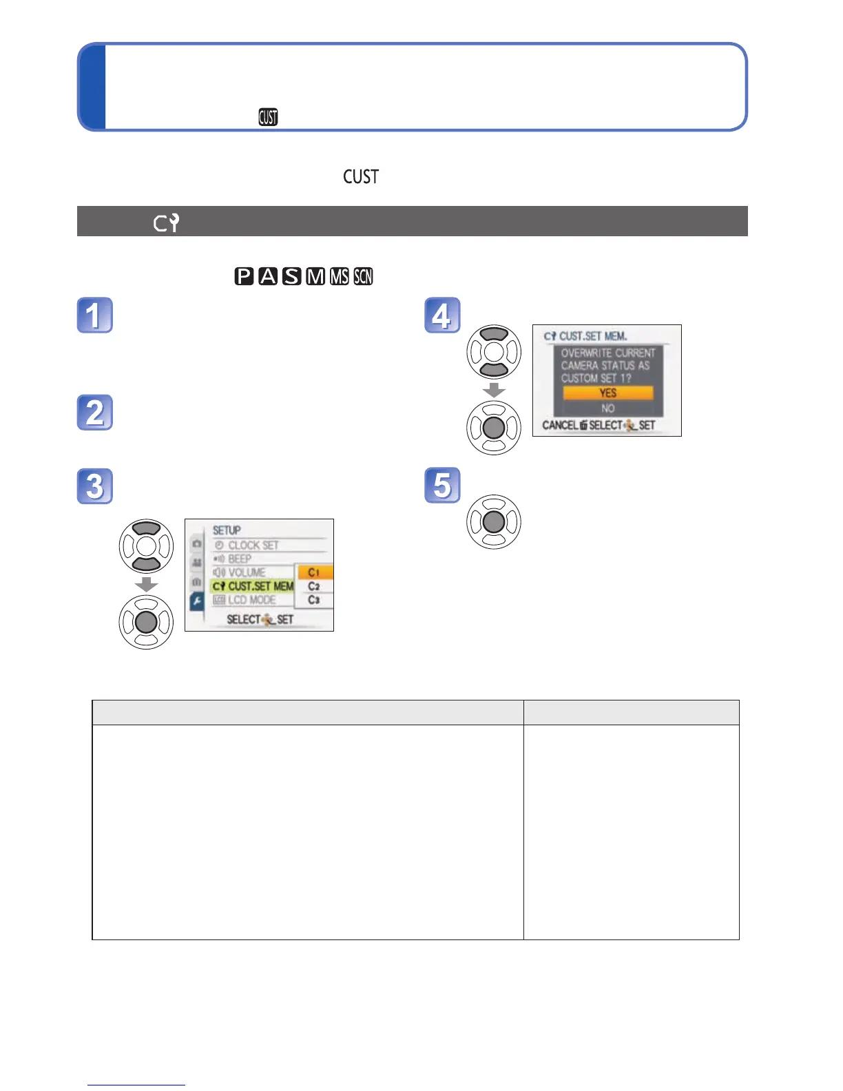 [CUST.SET MEM.] Registering your own settings