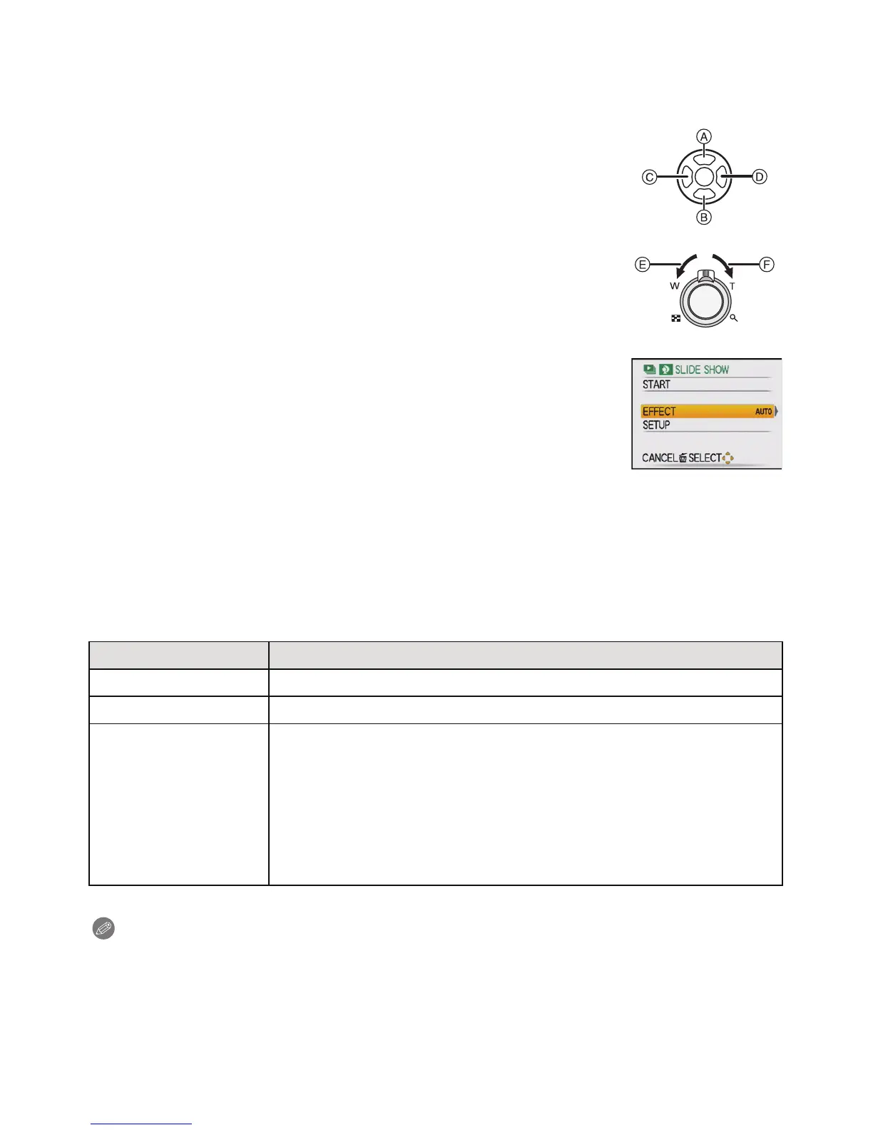 • [EFFECT] is set to [OFF] when playing a slide show with motion pictures only.