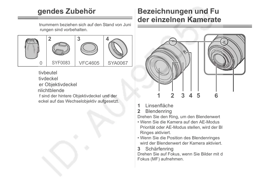 • Beim Kauf sind der hintere Objektivdeckel und der