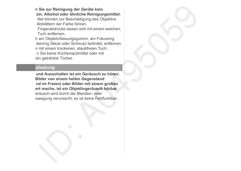 • Lösungsmittel können zur Beschädigung des Objektivs