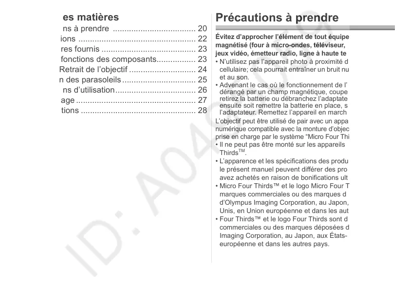 • Four Thirds™ et le logo Four Thirds sont des marques