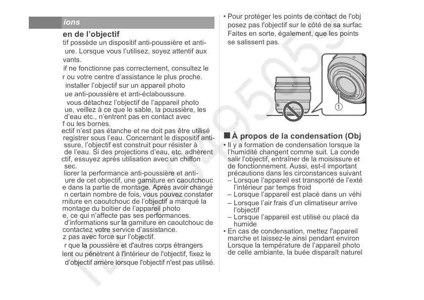 • Cet objectif possède un dispositif anti-poussière et anti-
