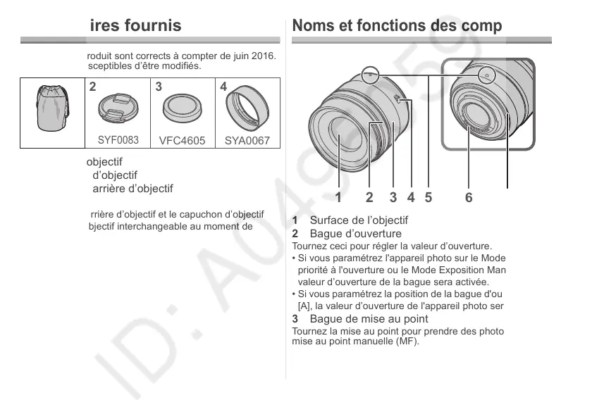 sont fixés à l’objectif interchangeable au moment de