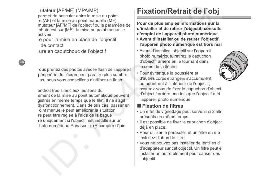 d’adaptateur sur cet objectif. Un filtre peut être utilisé, mais