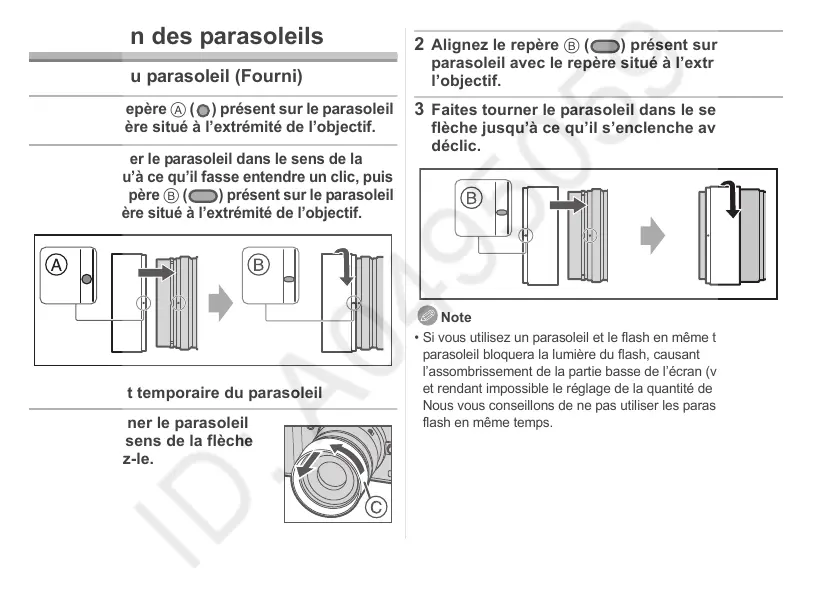 • Si vous utilisez un parasoleil et le flash en même temps, le