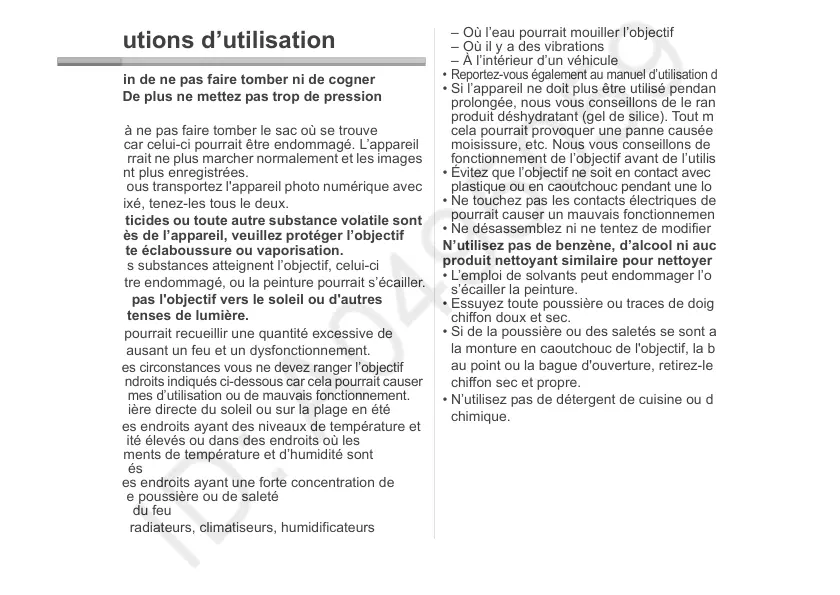• L’emploi de solvants peut endommager l’objectif ou faire