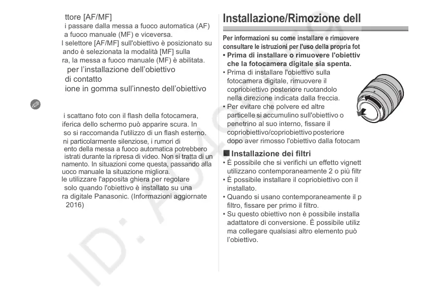 • Su questo obiettivo non è possibile installare una lente o