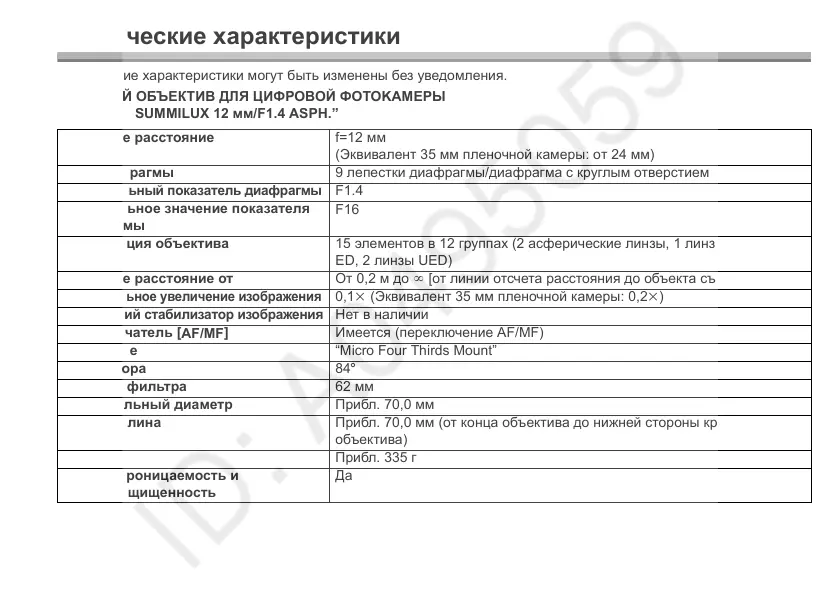 “LEICA DG SUMMILUX 12 мм/F1.4 ASPH.”