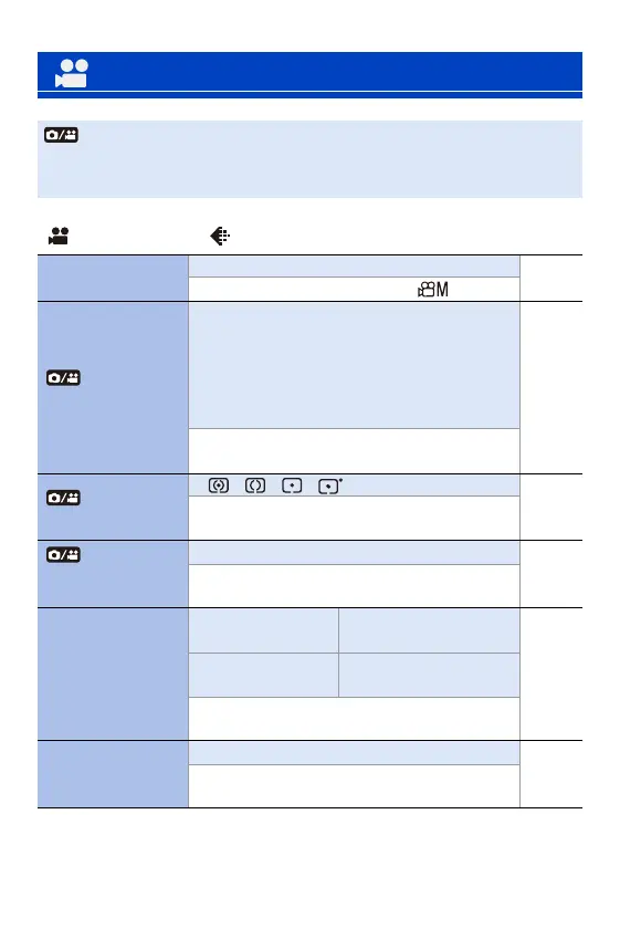: Menu items common to the [Photo] menu and [Video] menu.