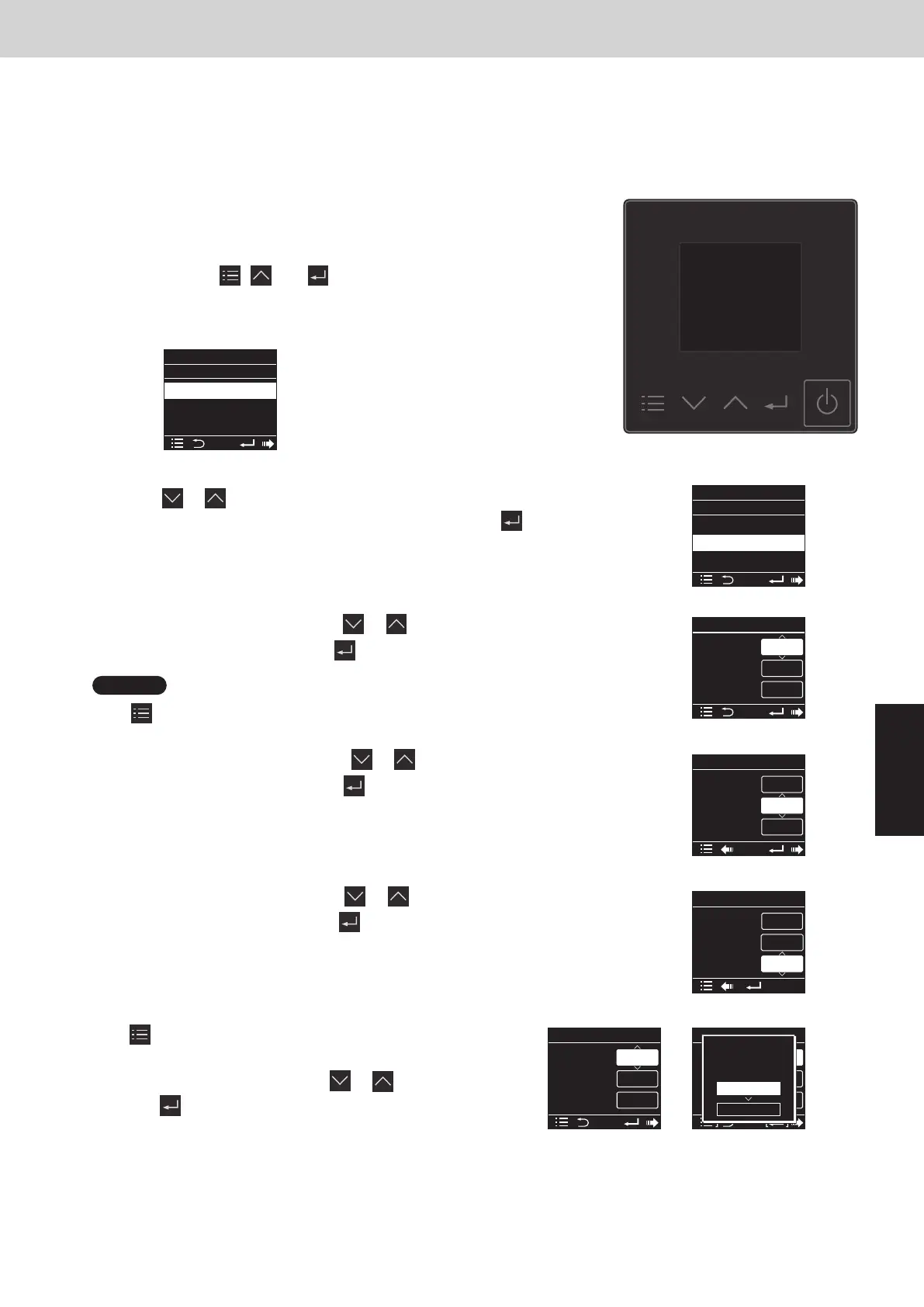 This allows the system address, indoor unit address, and other settings to be made for the individual or group-control
