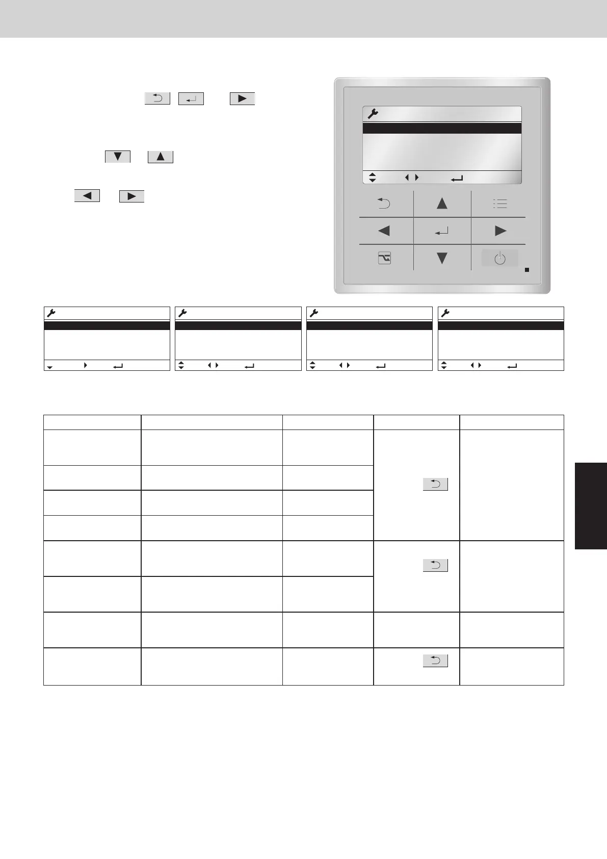 The remote controller includes a number of servicing functions. Use these as needed for test runs and