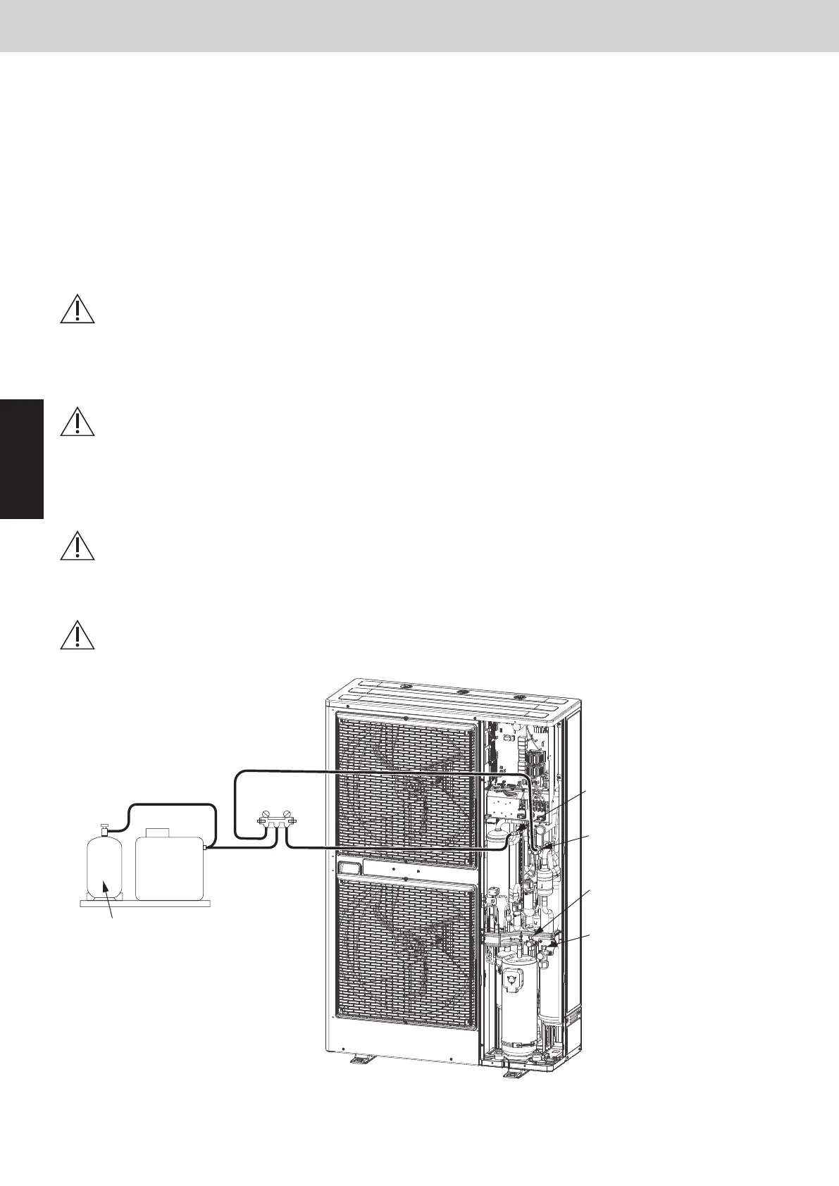 (2) Fully close each service valve on the liquid tube and gas tube of the outdoor unit.