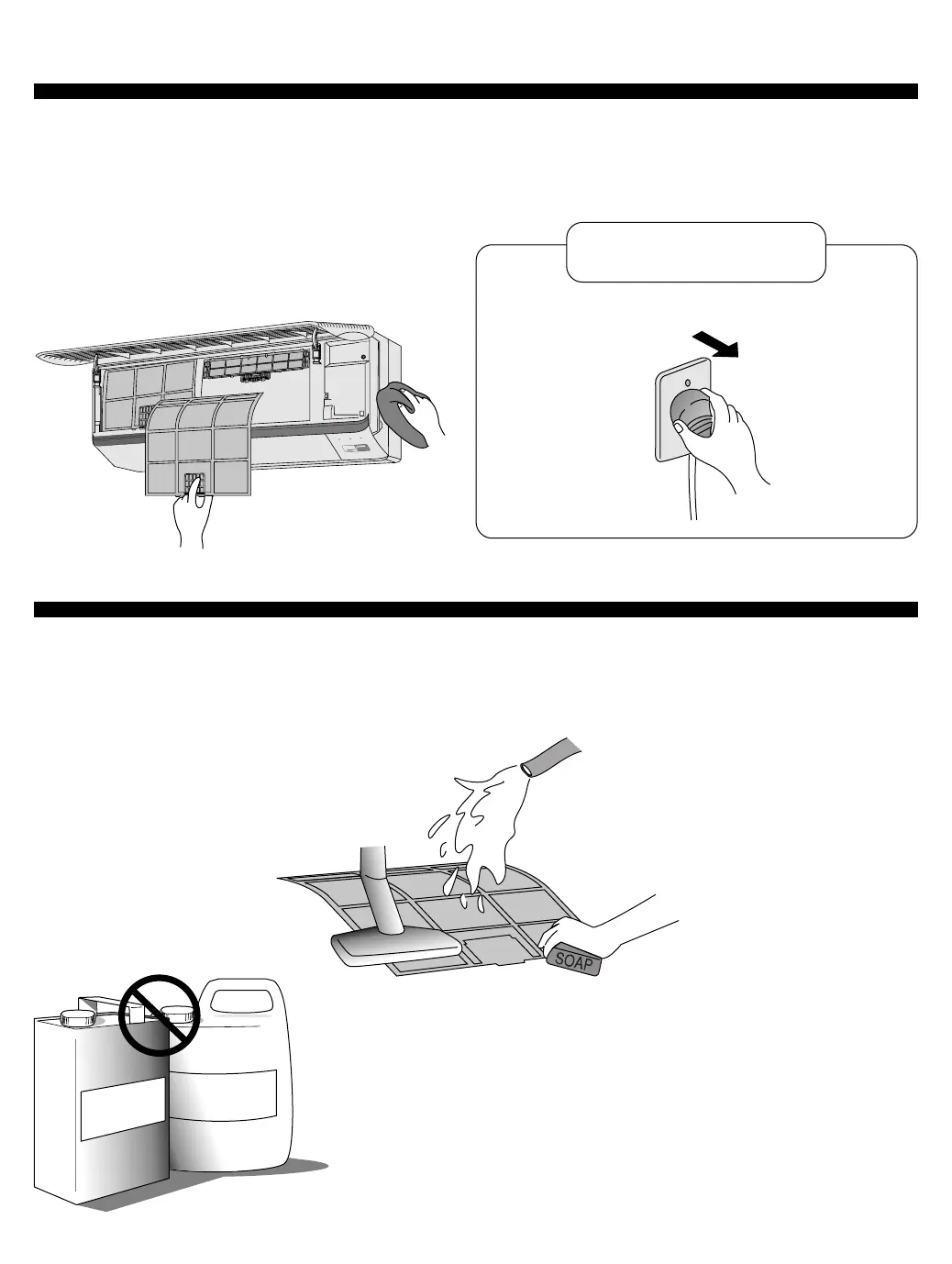 • Do not clean using benzene, thinner, scouring powder or cloths