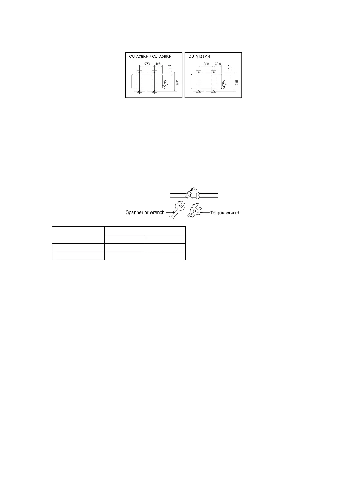 A75KR/A95KR 3/8” (42 N.m) 1/4” (18 N.m)