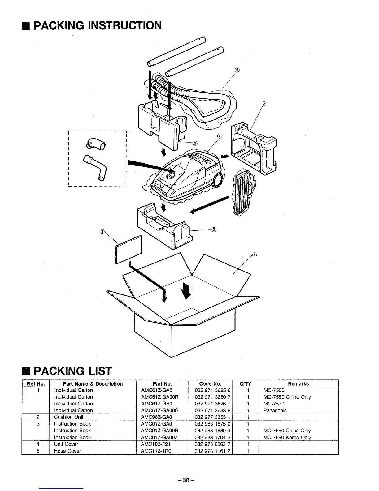 Panasonic MC-7570 - Packing Instructions; Packing List