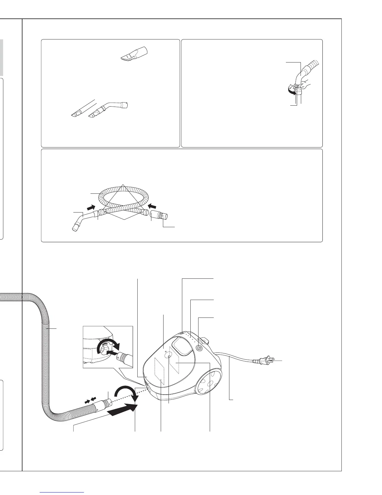 Panasonic MC-CG301 - Specific Parts and Controls; Crevice Nozzle and Hose Assembly; Vacuum Cleaner Controls and Power