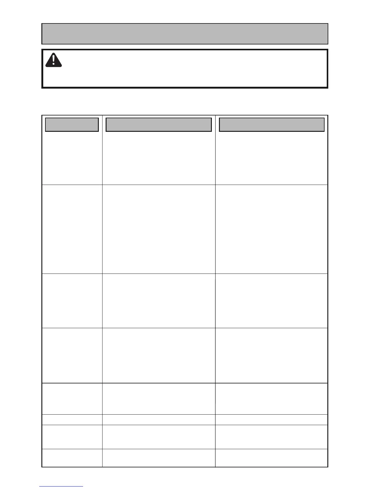 La luz no funciona. 1. Bombilla fundida. 1. Cambie la bombilla. (page 55)
