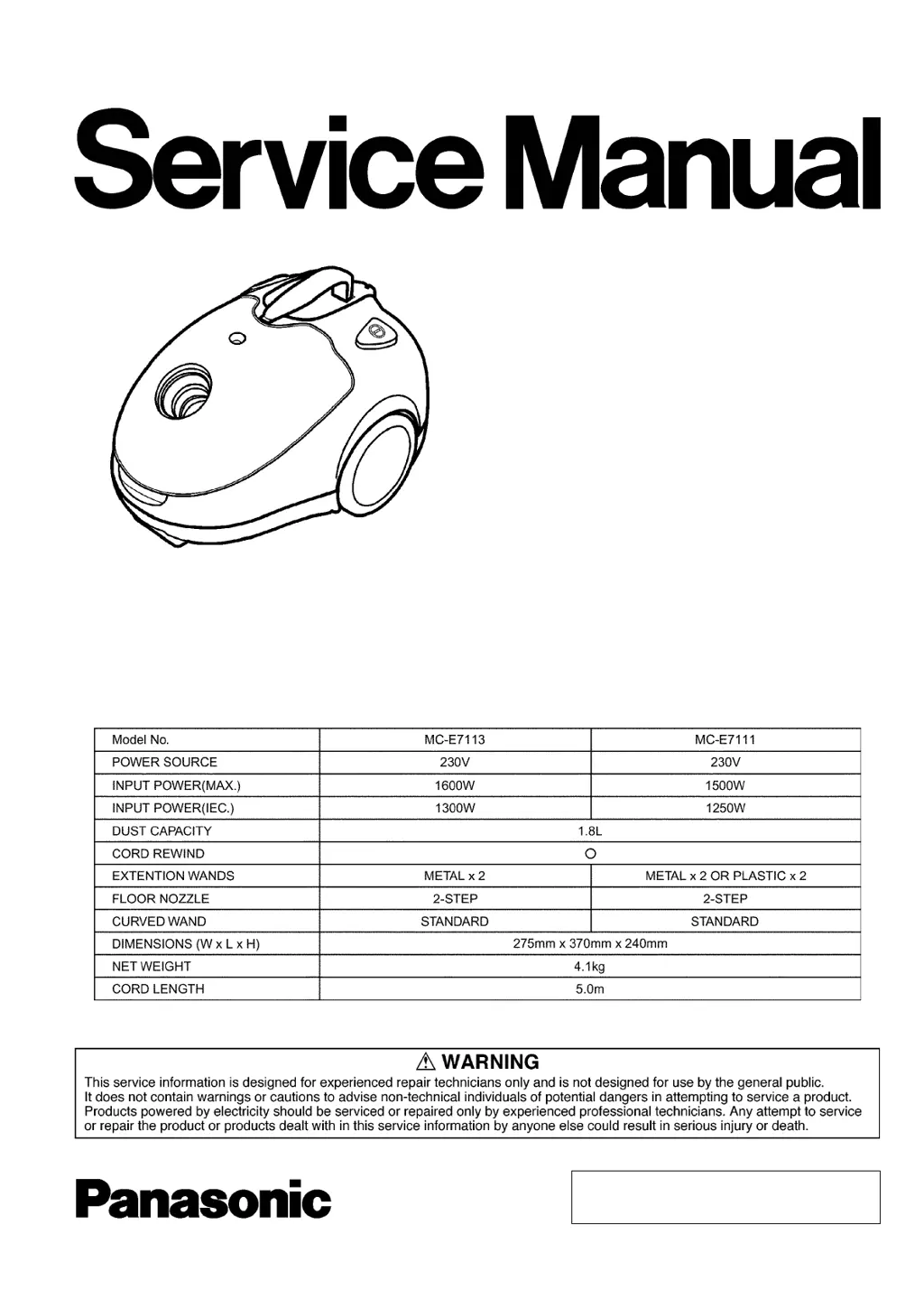 How to fix a Panasonic MC-E7111-AE79 when the motor fails to rotate (no noise)?