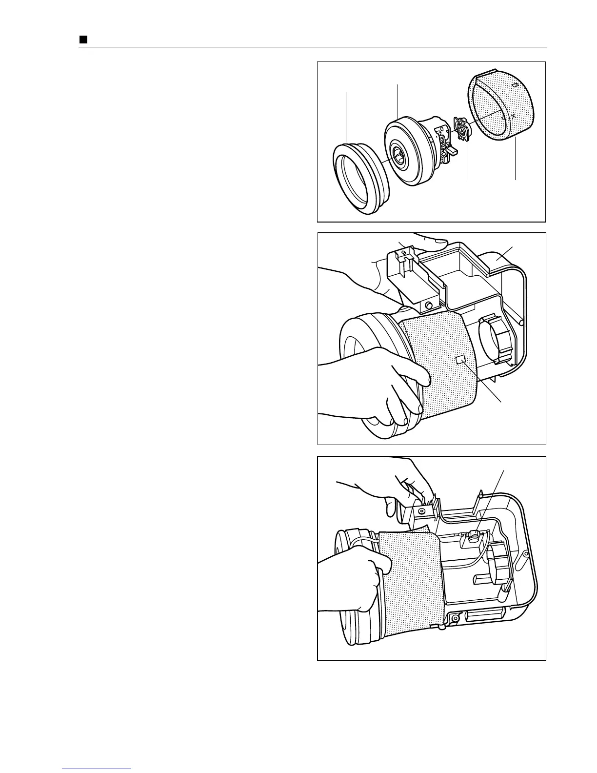 12. Place the motor unit and cord reel ass’y into the lower body.