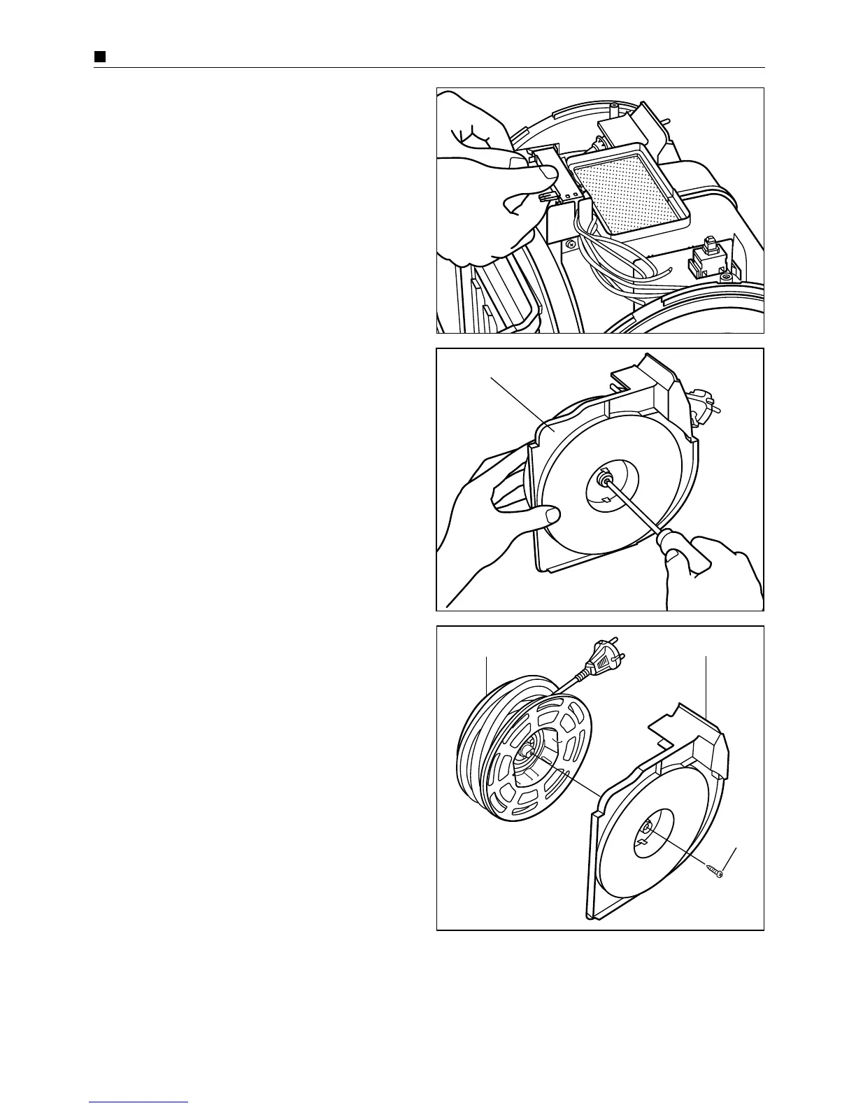 and place the cord reel ass’y into place. Then reassemble