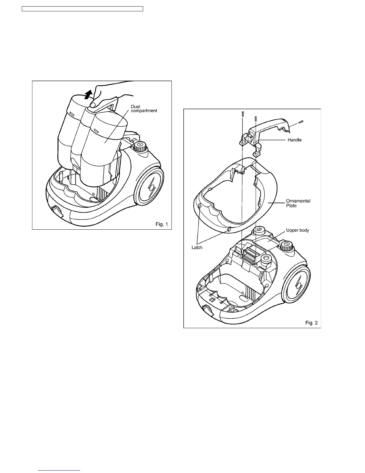 1. Lift up dust compartment and take it out. (Fig.1) 2. Remove screws from Ornamental Plate and handle and