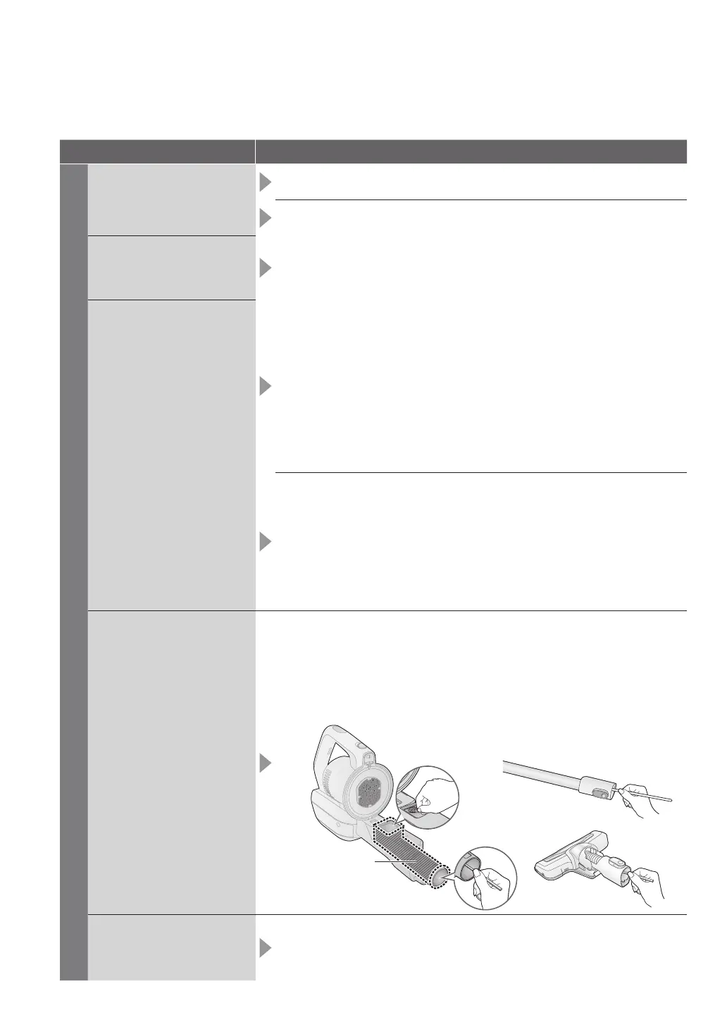 The extension wand and nozzle are clogged up with debris → Remove the debris
