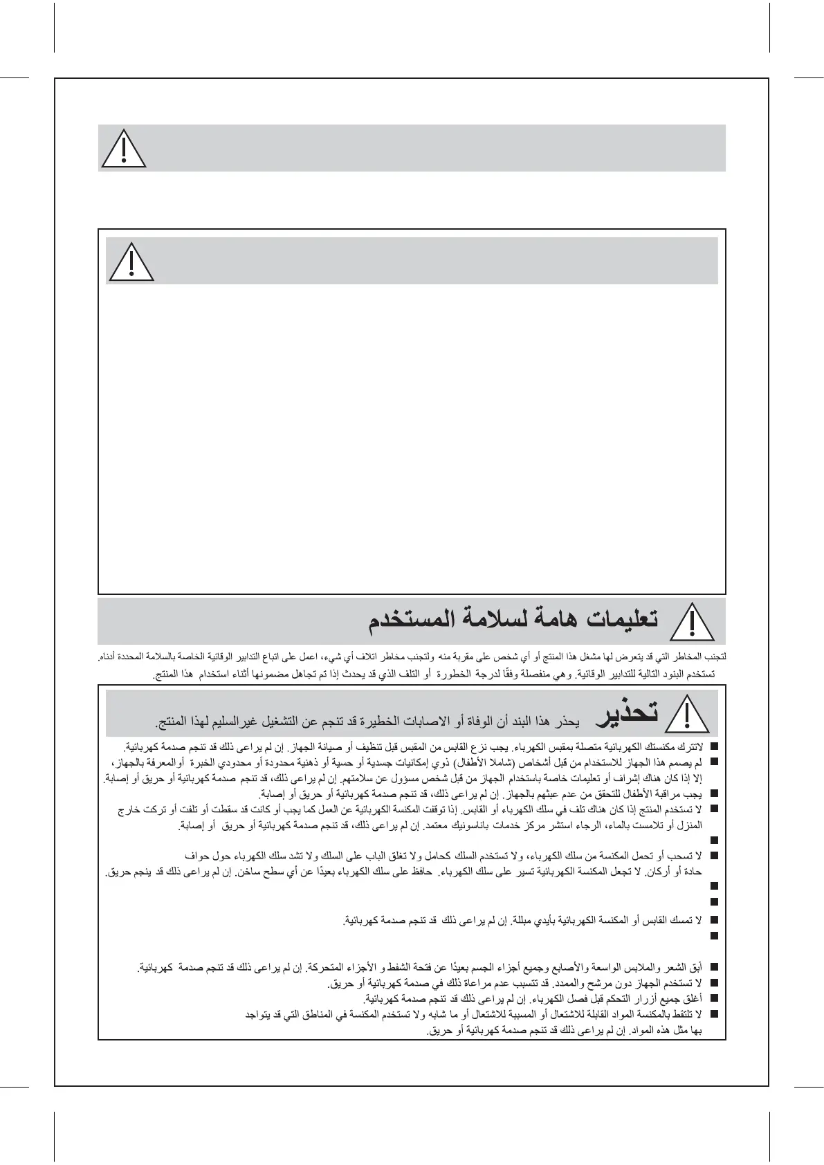 ■ Do not handle Plug or appliance with wet hands. If not, may cause an electric shock.