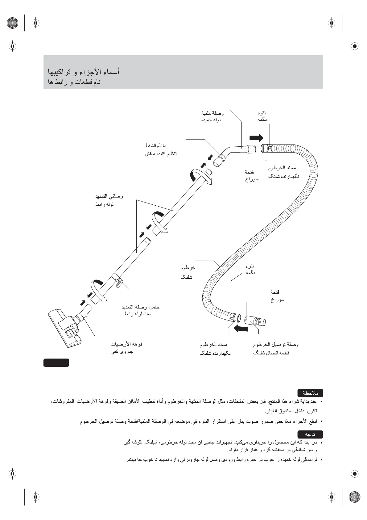 Push together until the projection clicks into place in the curved wand / hose connection wand hole.