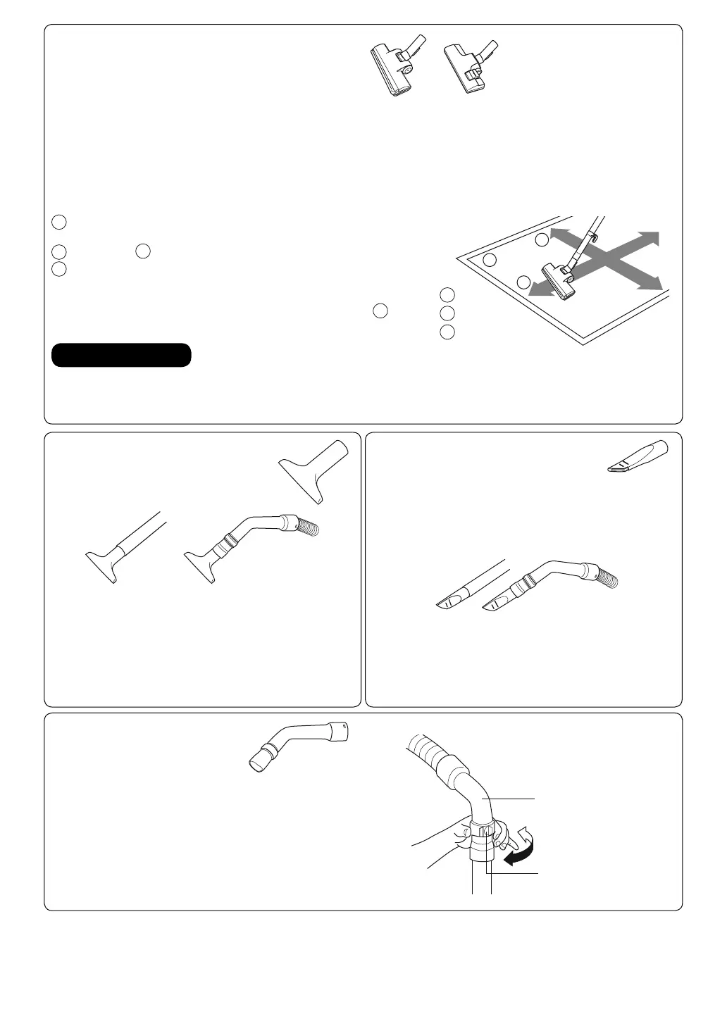 To prevent damaging the floor surface, do not vacuum by moving the Full Capture Nozzle / 2 Step Nozzle side to side.