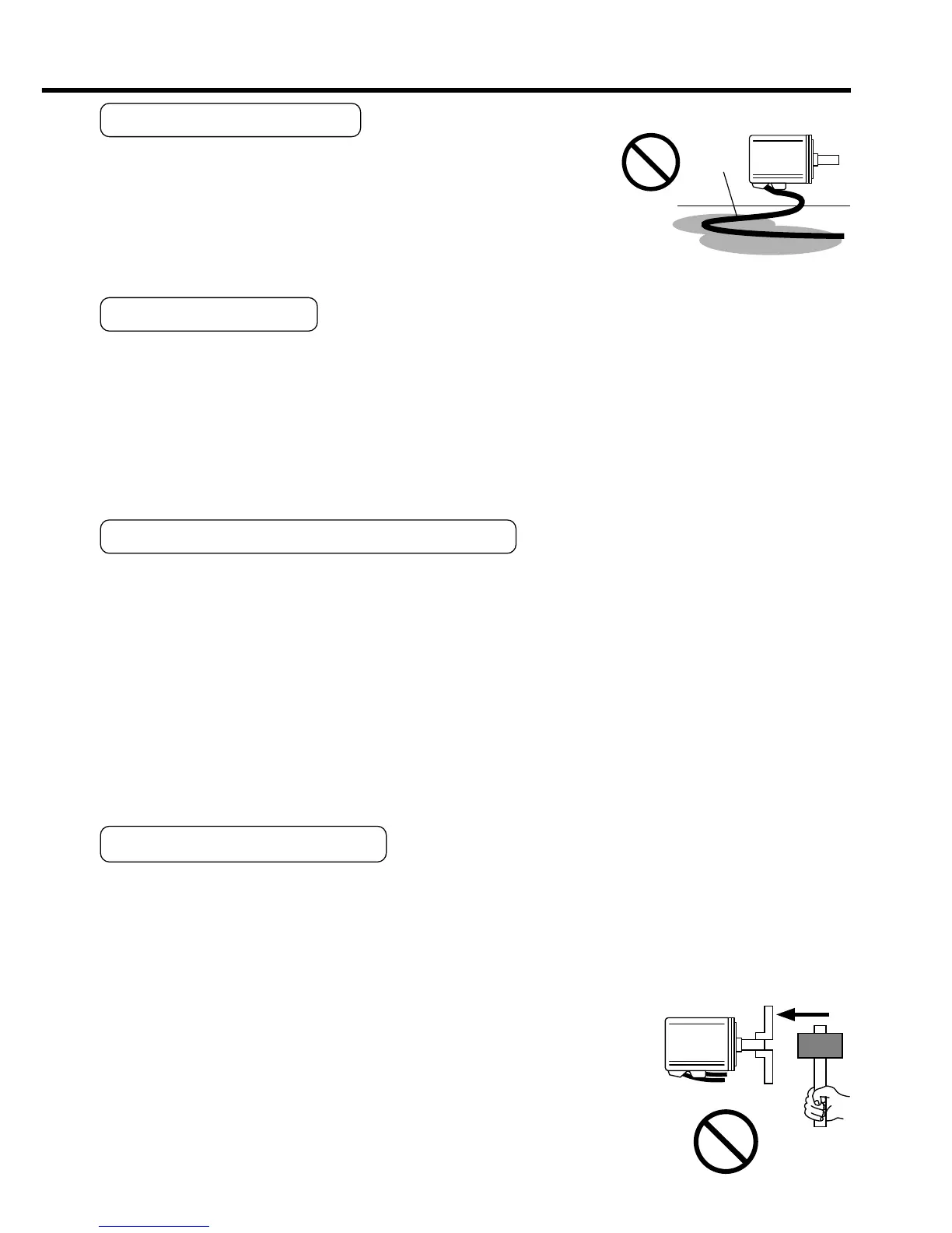 2) Especially in an application where the motor itself travels, fix the attached cable and