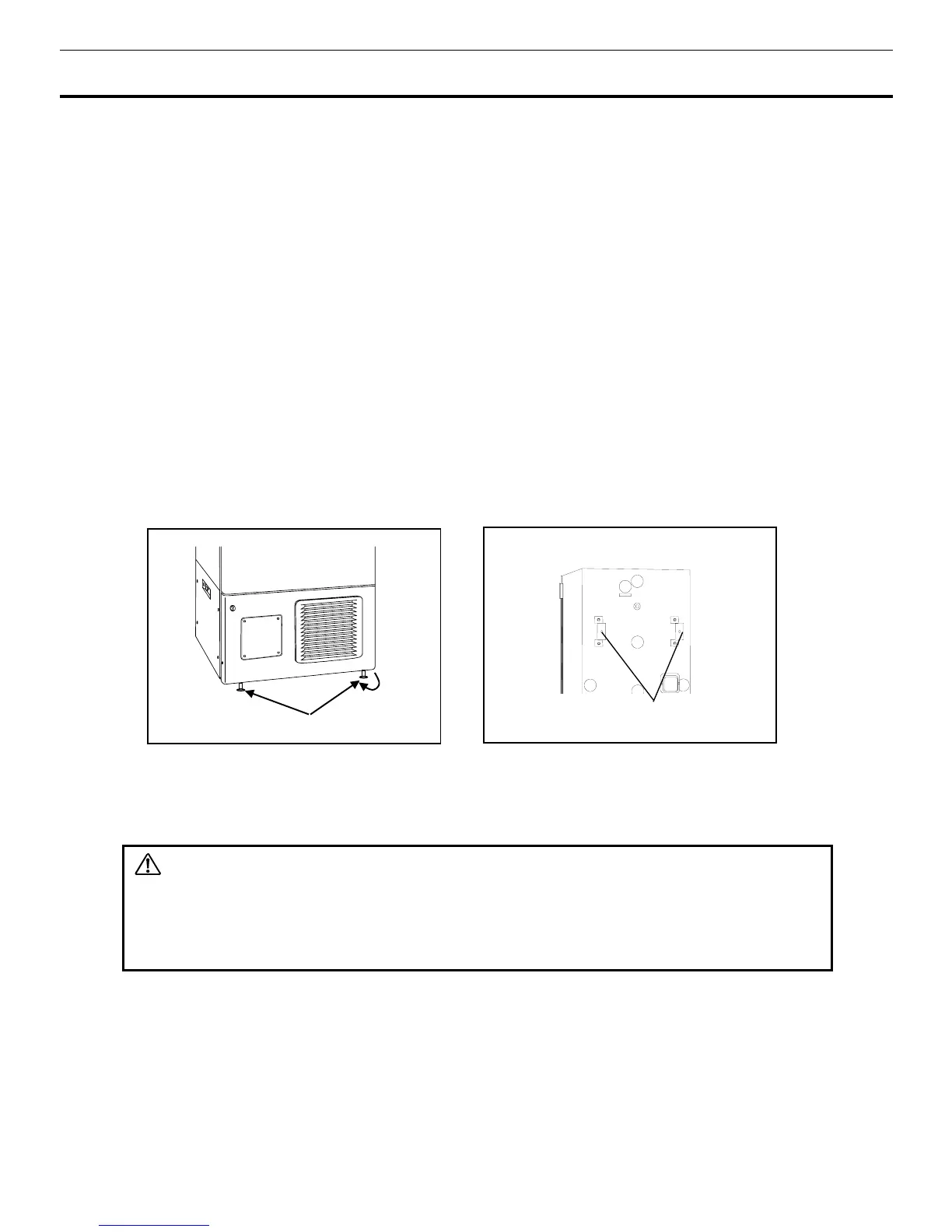 Extend the leveling feet by rotating them counterclockwise to contact them to the floor. Ensure the unit is