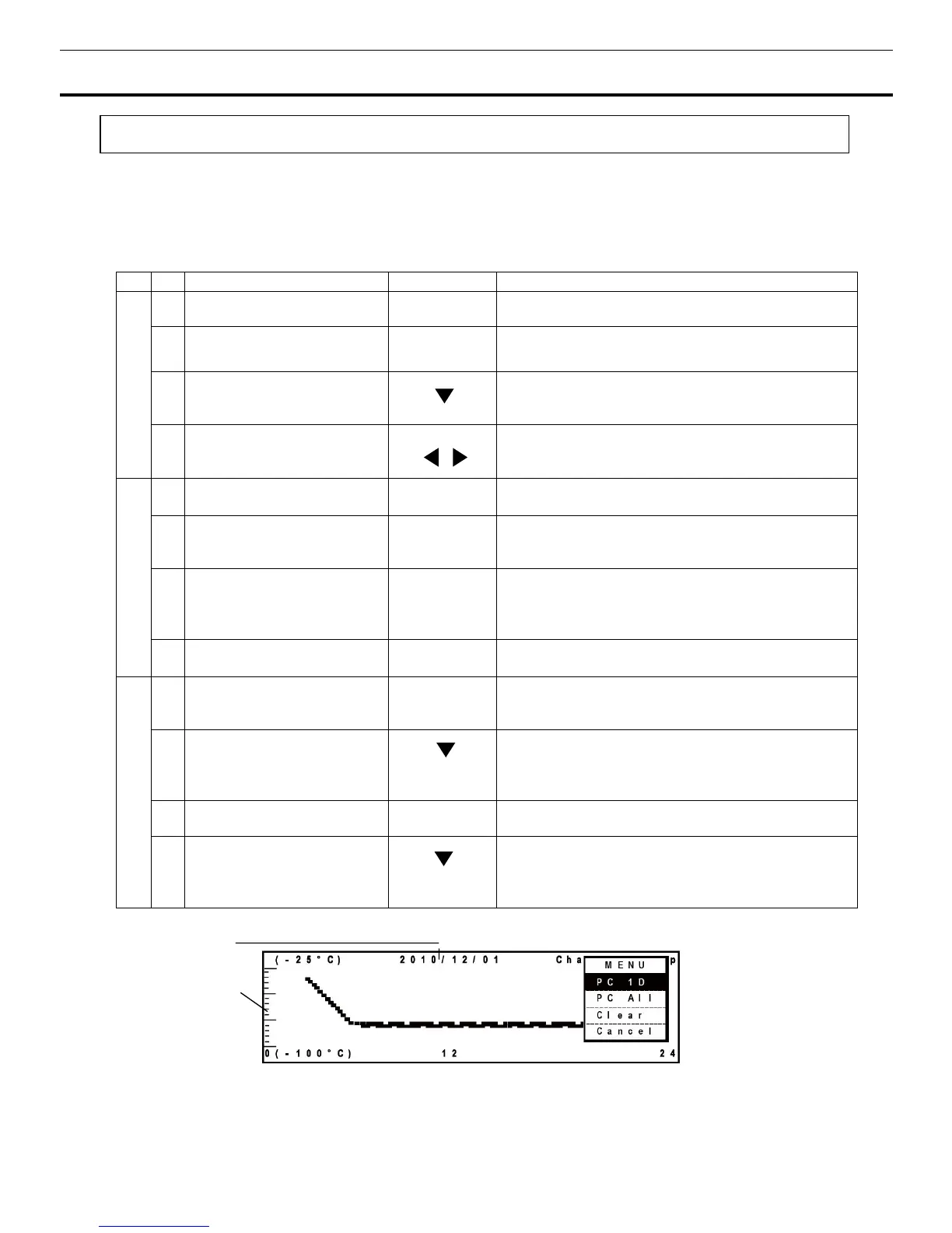 Table 8 : Display indication and the process to transmit past 1-day chamber temperature record