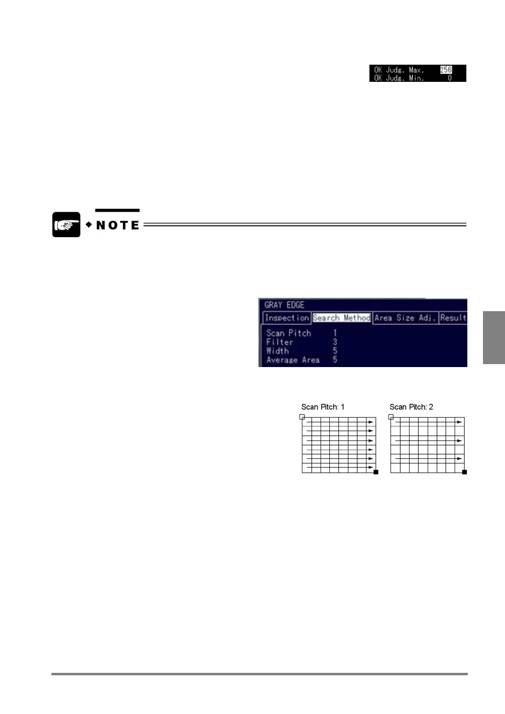 value. If the noises are detected in front of the round- or sharp-shaped detection parts, increase the "Width" and
