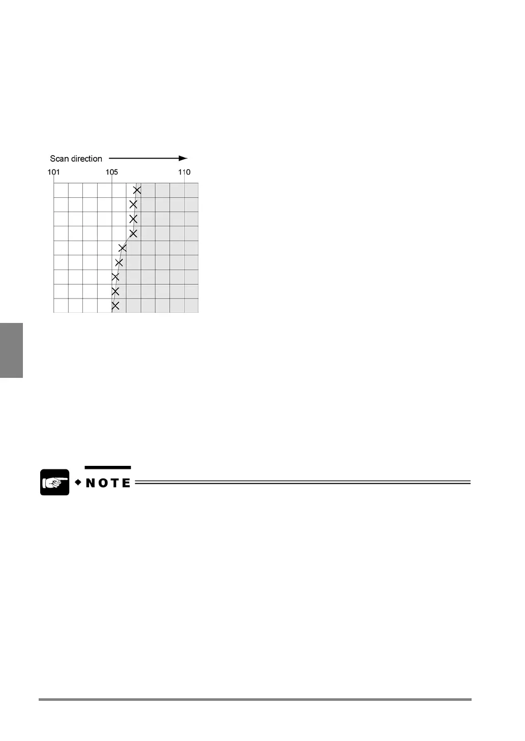Thus, the coordinate values of the edge on the lines from 105.0 to 105.9 are averaged.
