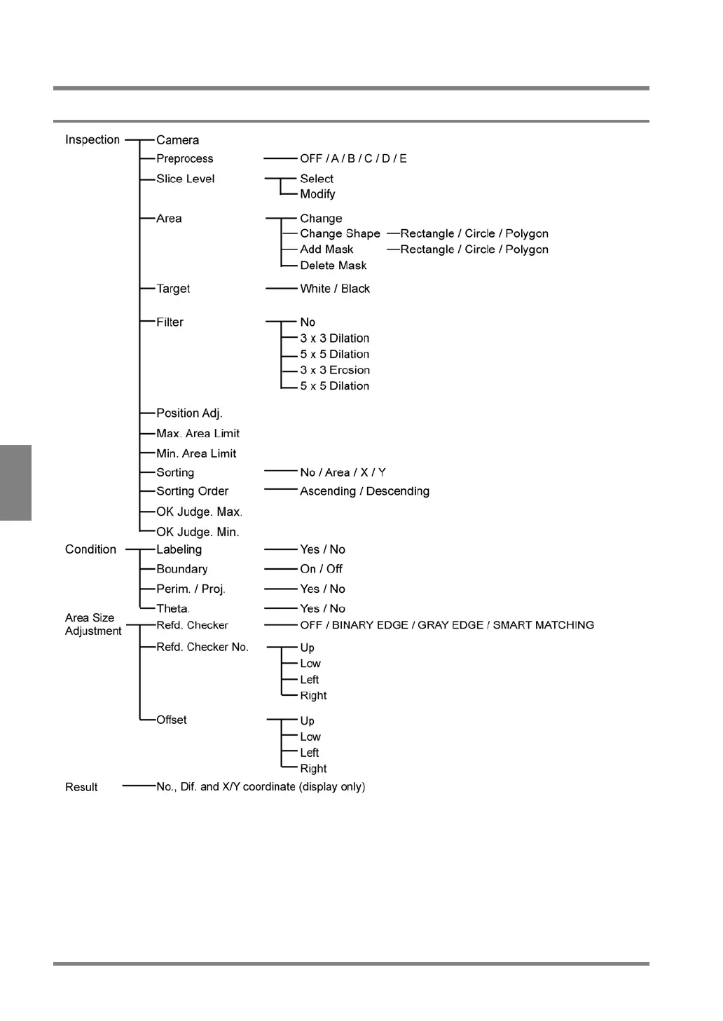 Panasonic Micro-Imagechecker PV310 - Feature Extraction; Menu Options