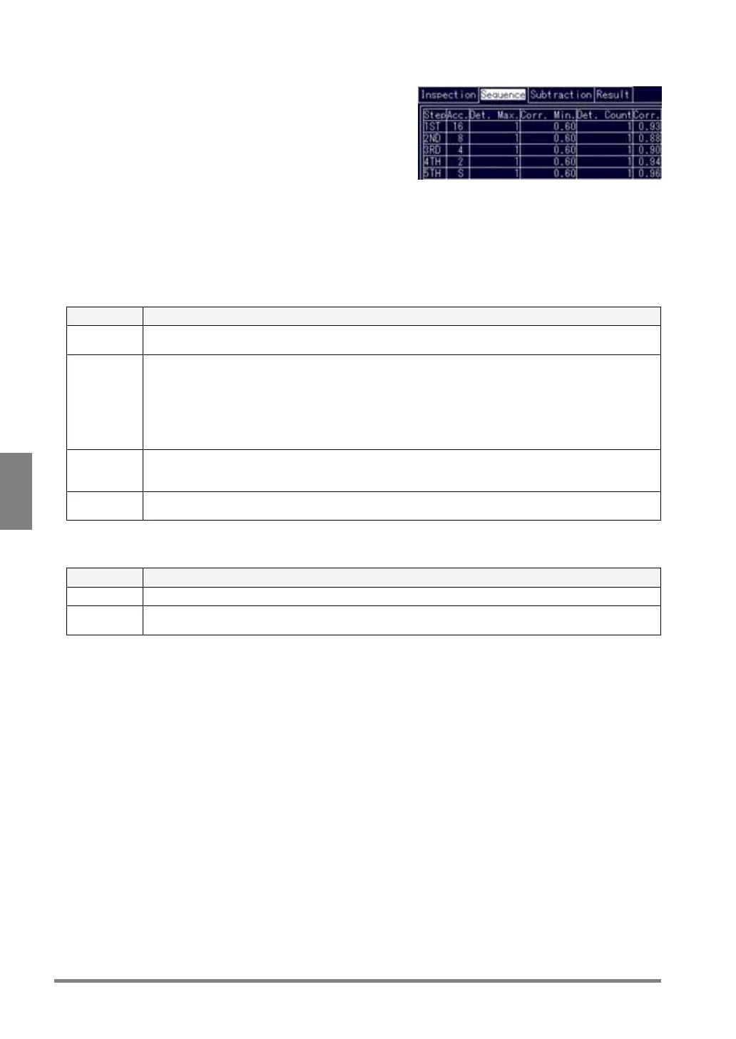 If “Inspection Object” is set to “Low Contrast”, the correlation values displayed in the table under Sequence tab