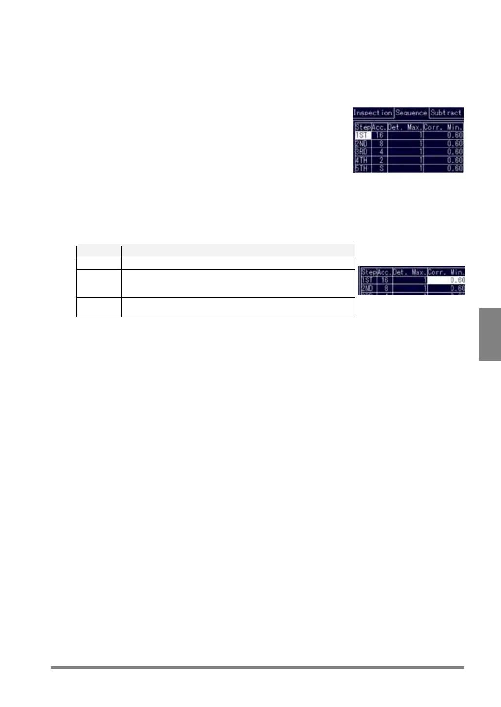 5. After setting “Acc.”, “ Det. Max.” and “Corr. Min.” at the entire phases, press the C key.
