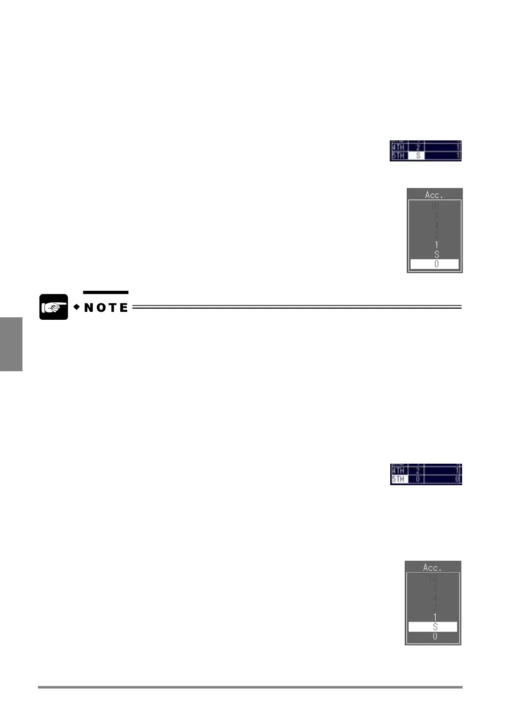 A cell in the “Acc.” column is highlighted.