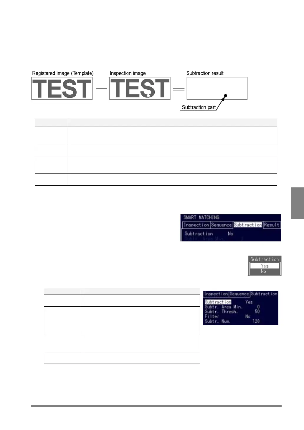 detected image and the template. The lower the Subtraction Threshold value, the stricter