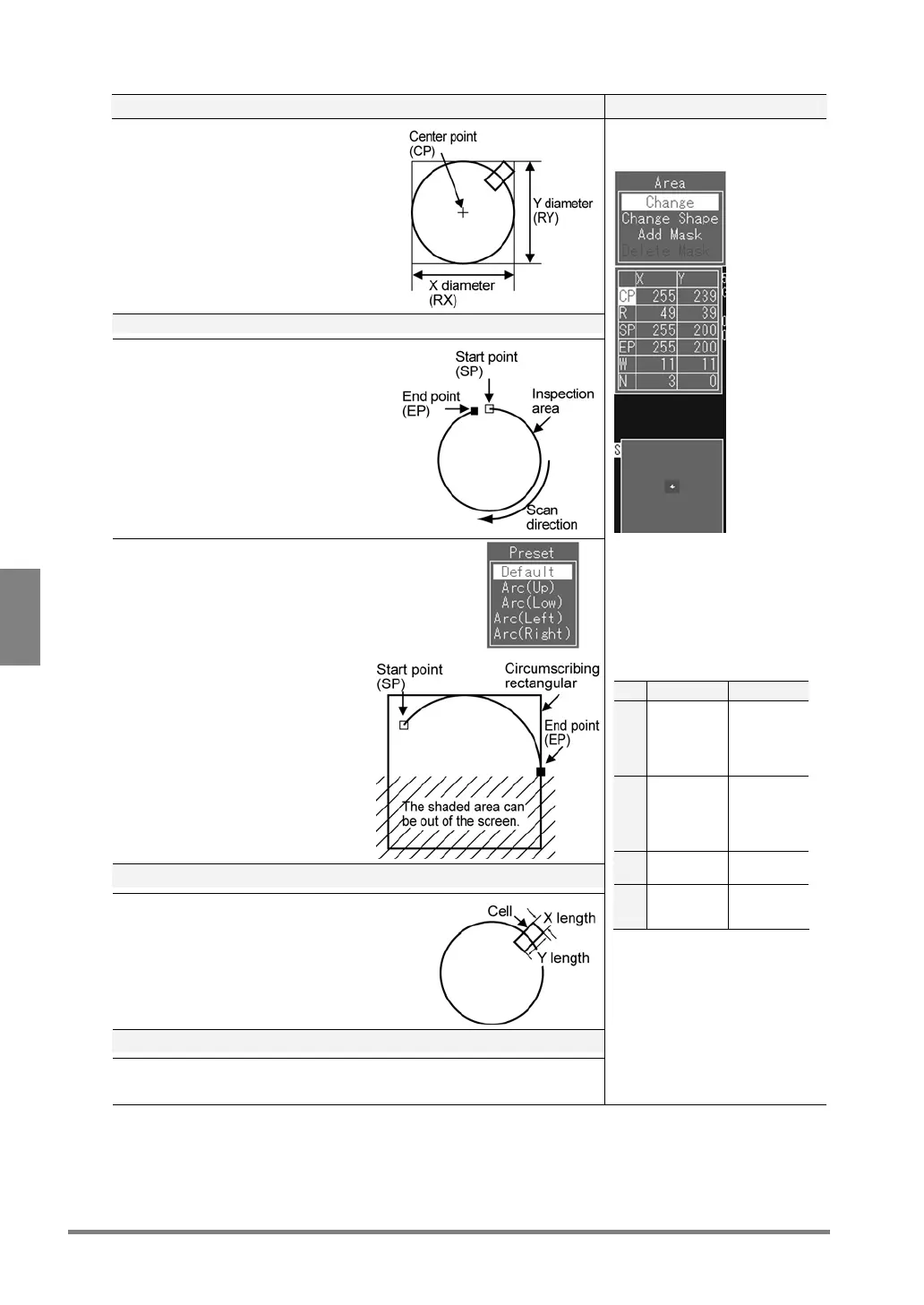 To set the center point of a circle (CP) and diameter (R) Setting dialog