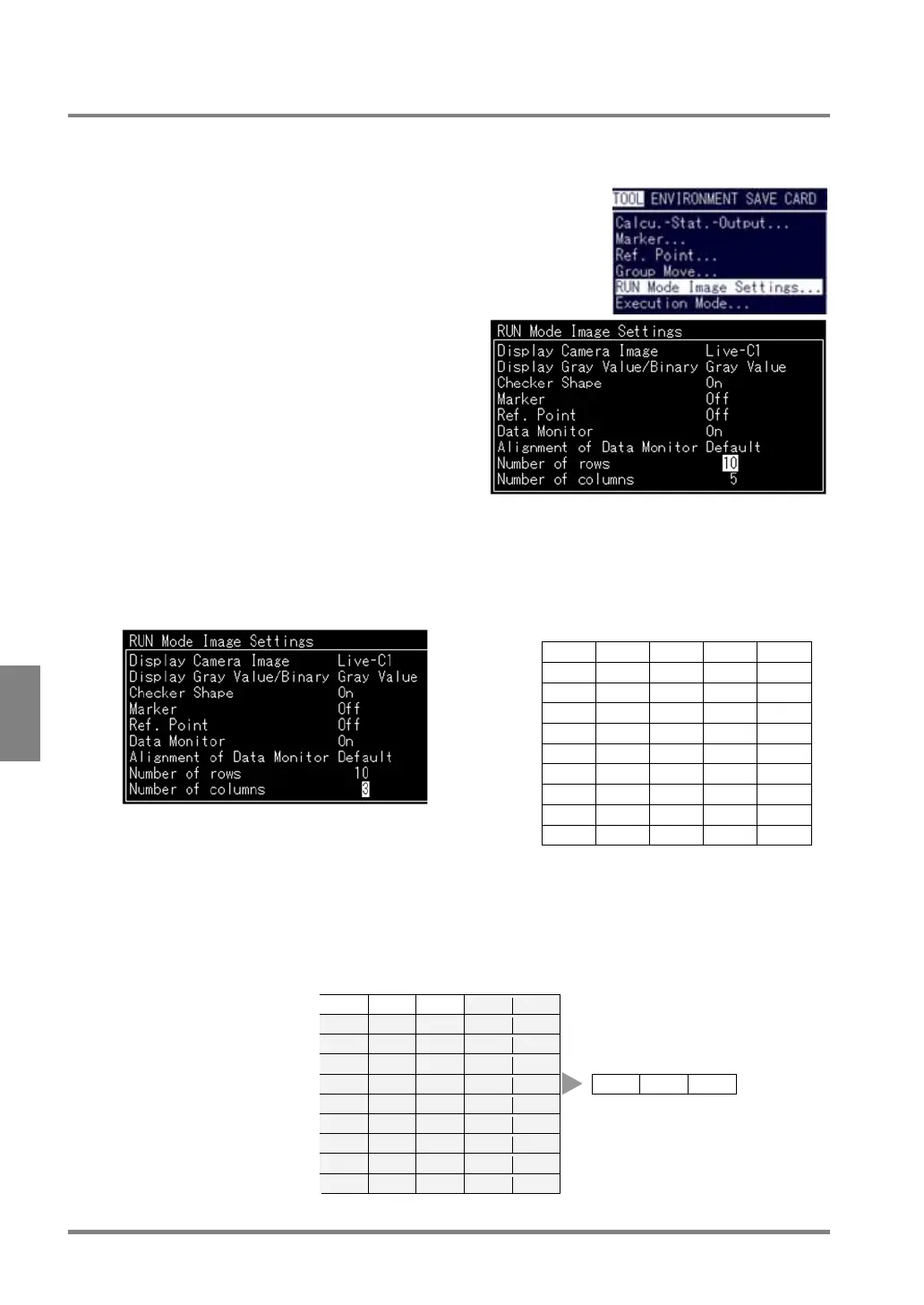 1. Select “TOOL” >”RUN Mode Image Settings”
