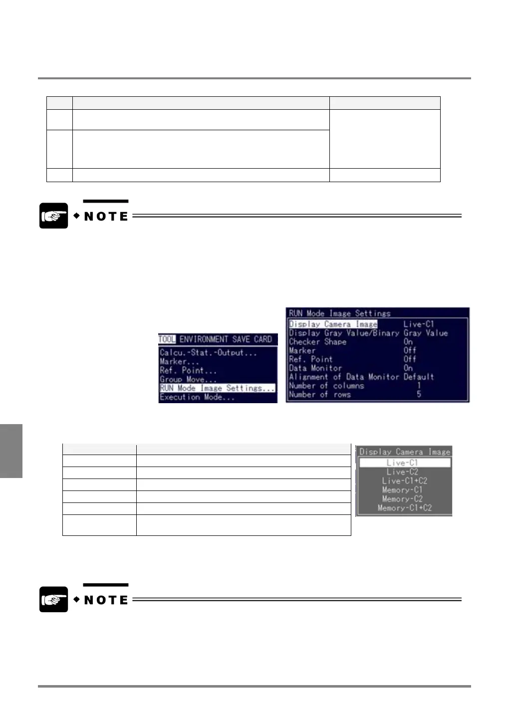 1. Select “TOOL” > “RUN Mode Image Settings”.