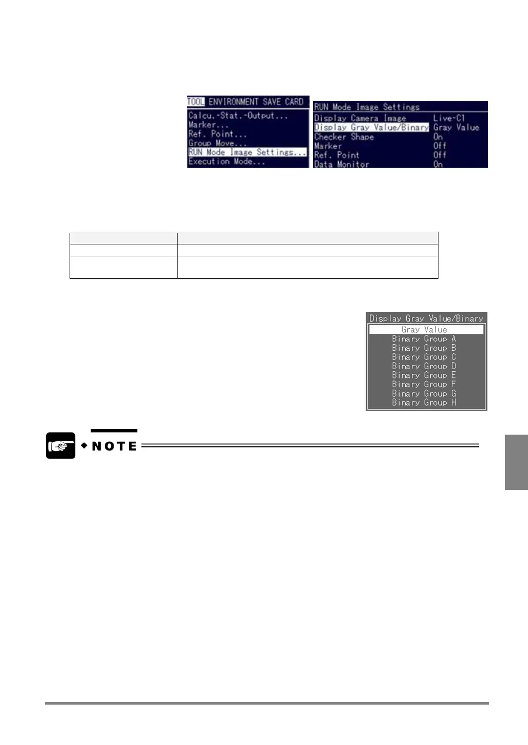 1. Select “TOOL” > “RUN Mode Image Settings”.