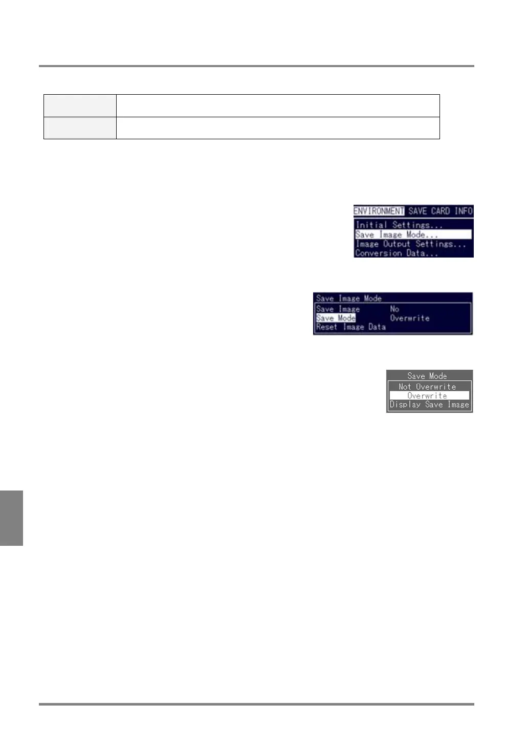 1. Select "Save Image Mode" from the ENVIRONMENT menu.