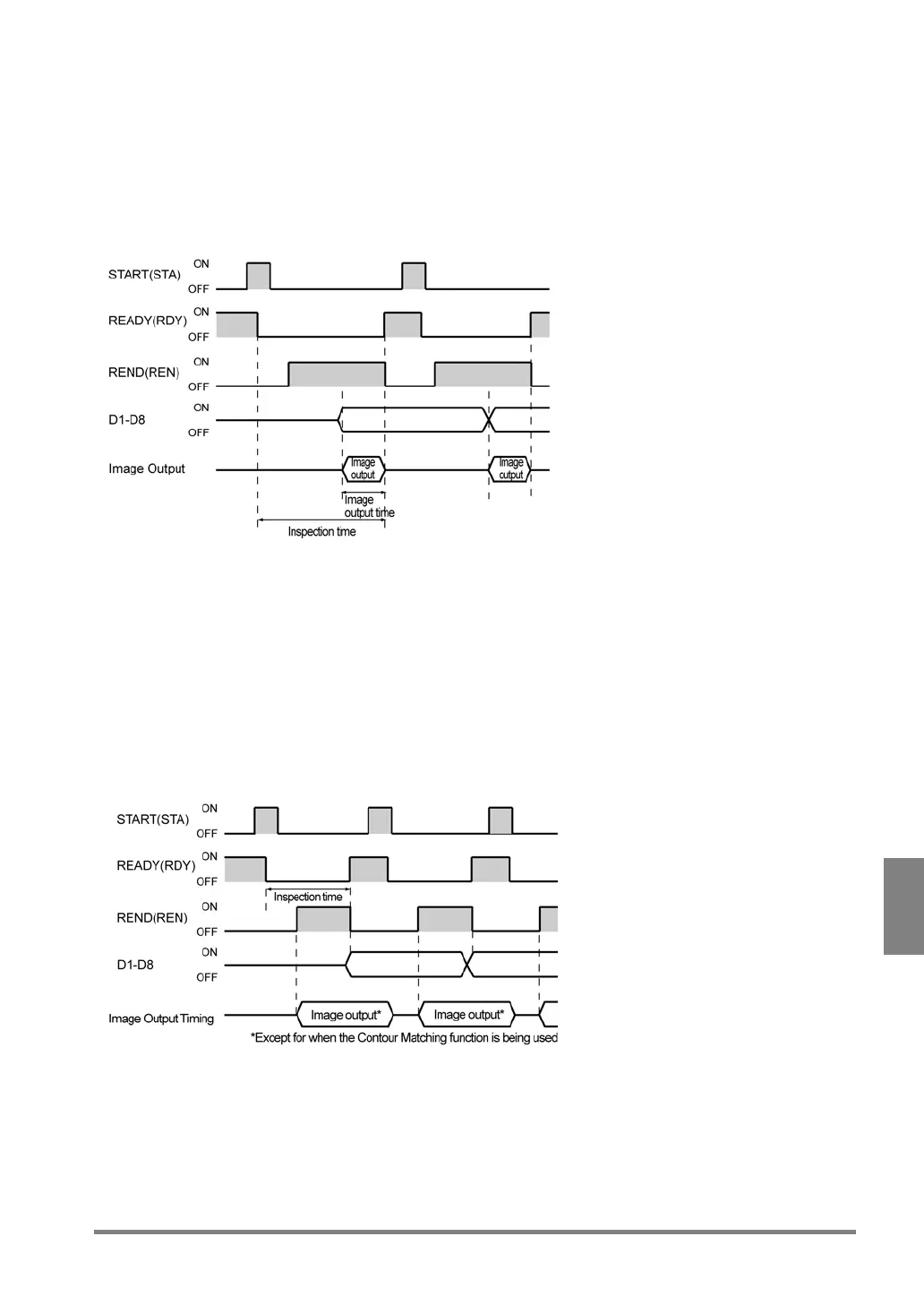 The PV310 outputs an image after inspection is complete, and then turns READY signal ON. Therefore,