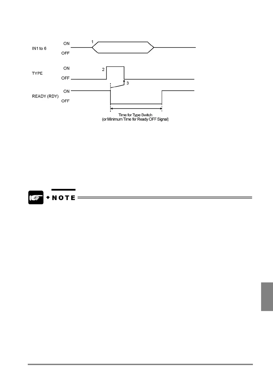 • If the TYPE signal is input by specifying the current product type number, READY signal is turned off, but