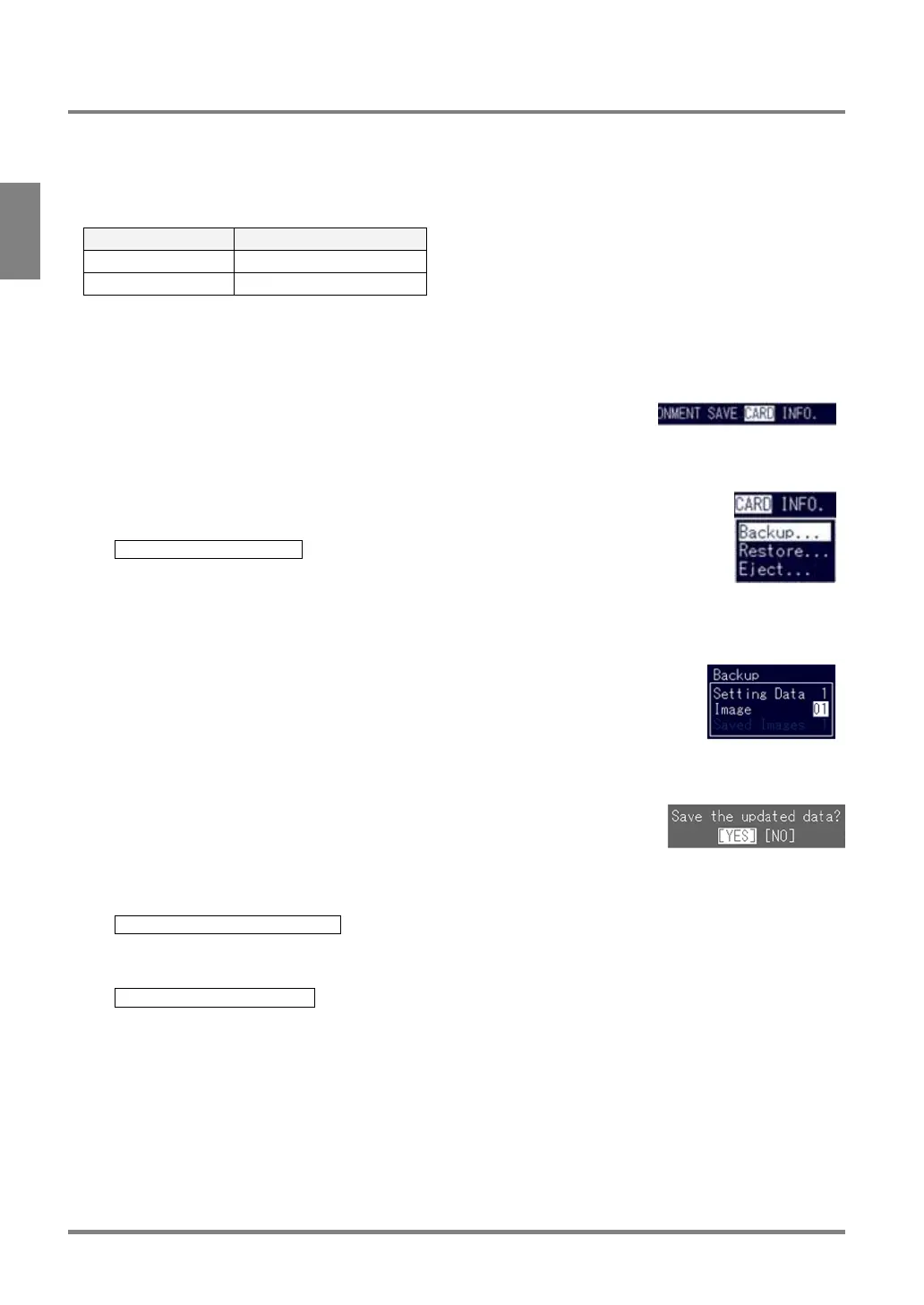 1. Select "CARD" from the menu bar in SETUP mode.
