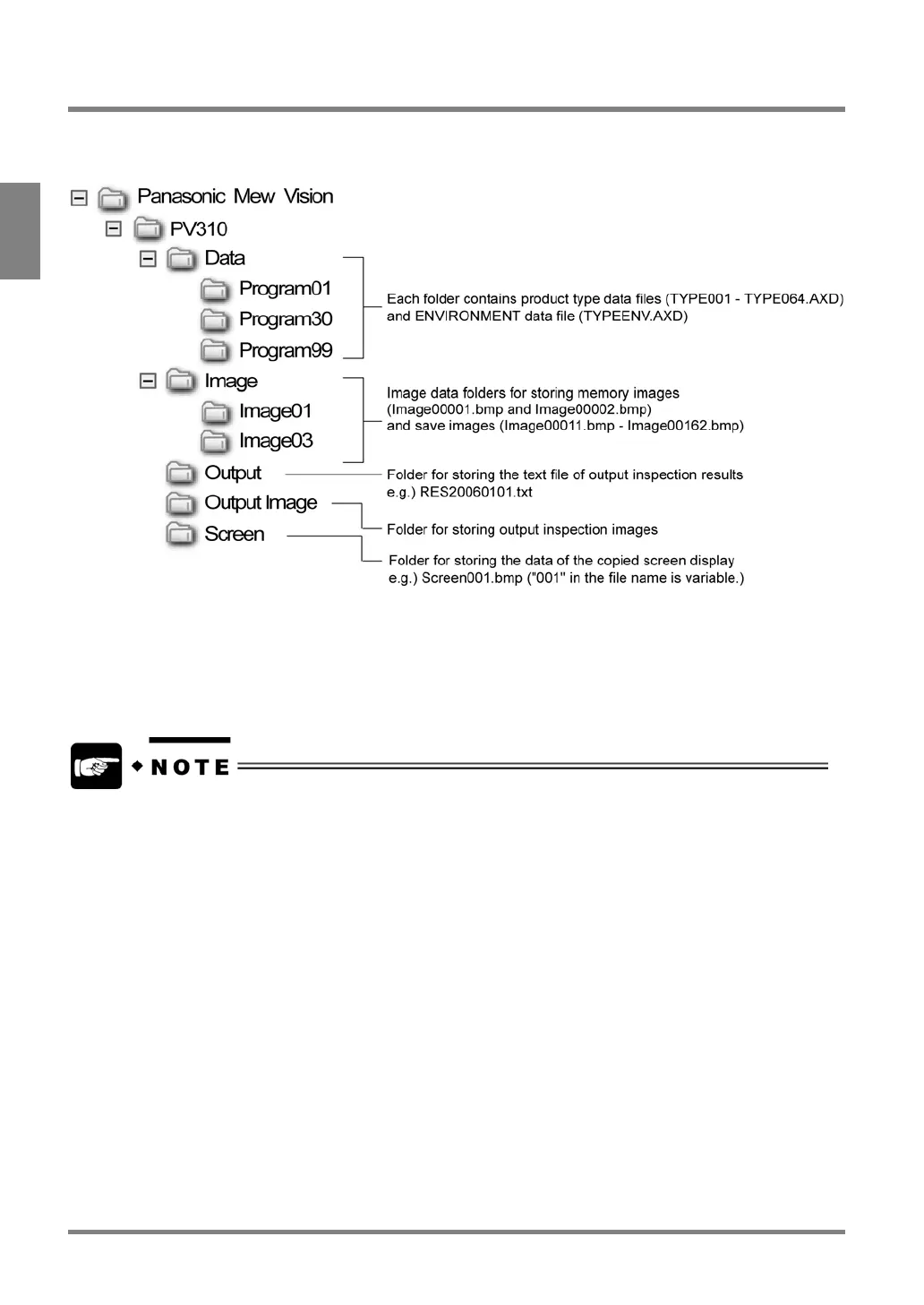You can view the following folder tree on the computer after saving the inspection results, setting data, images, and