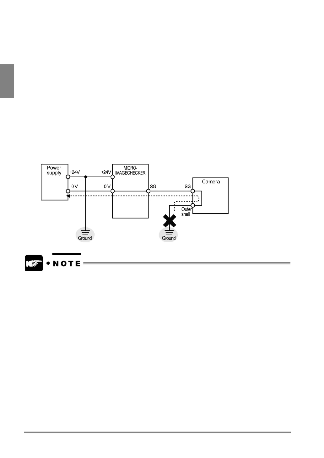 • If the positive terminal of the power supply is connected to ground, be sure to mount the camera in an