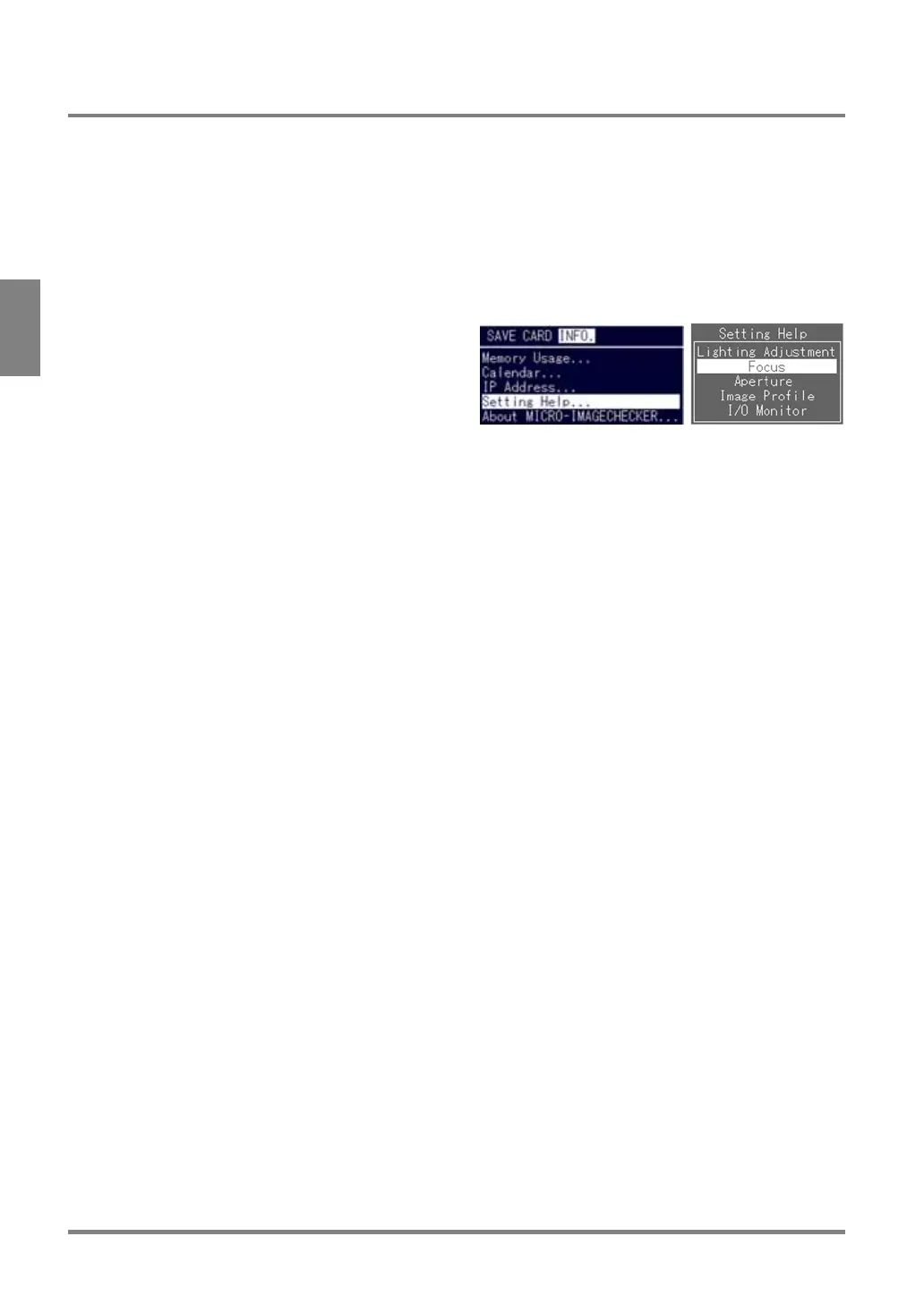 2. Select “Setting Help” > “Focus” or “Aperture” from the menu bar.